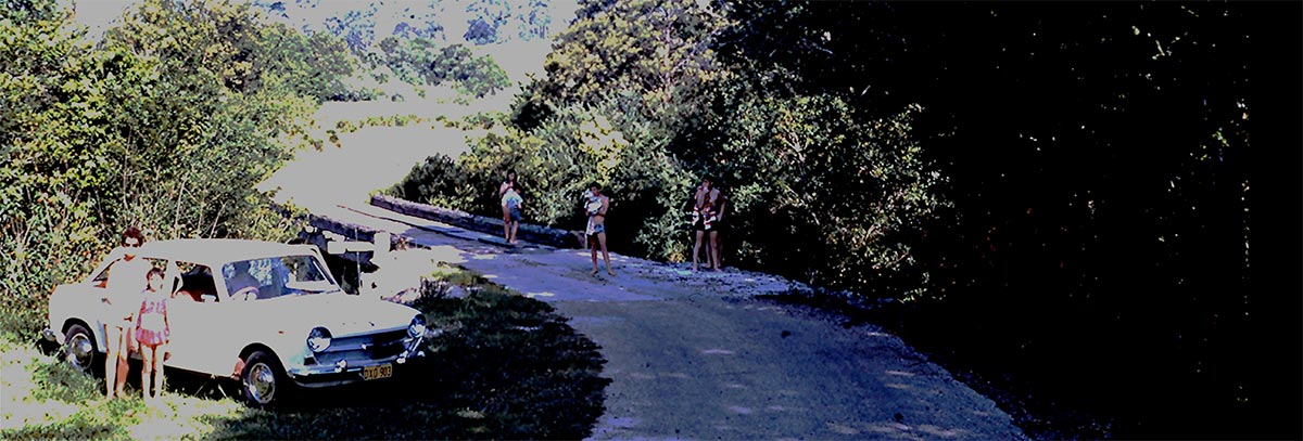 The remnants of the old timber bridge that once connected Timboon Road with Promised Land Loop Road can be seen on the edge of the riverbank. The bridge was built in the 1930s, however, recurring damage from floods over the years forced the removal of the bridge in the 1970s.